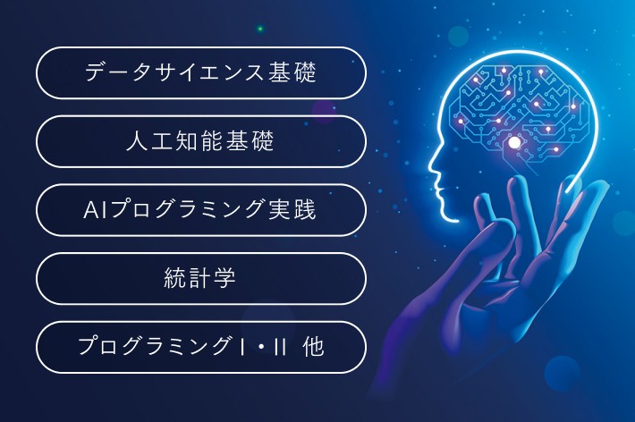 データサイエンス基礎/人工知能基礎/情報処理概論/プログラミング基礎/統計学/情報処理Ⅰ・Ⅱ・Ⅲ・Ⅳ/データサイエンス実践/AIプログラミング実践