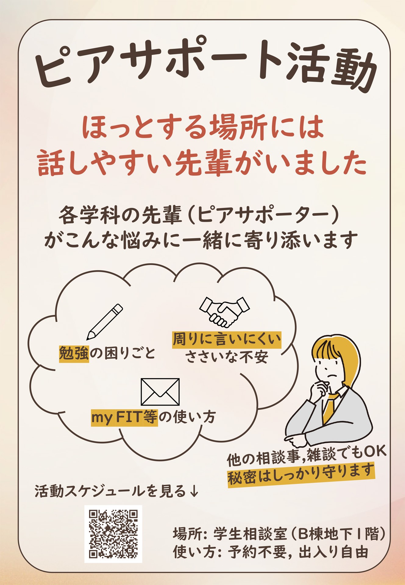 どんなささいな悩みにも先輩学生(ピア・サポーター)が相談に乗ります。