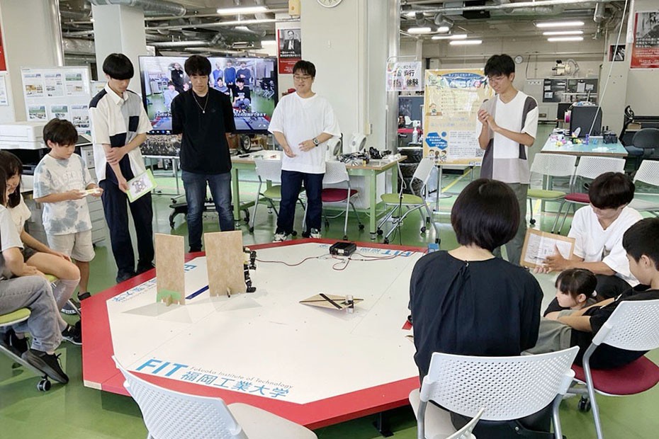 新着情報[地域貢献]コミセンわじろ × 福岡工業大学・城東高校「わじろ地域大学2025」(コミセンわじろ主催) 第1回ロボットを動かそう!をモノづくりセンターで開催しました