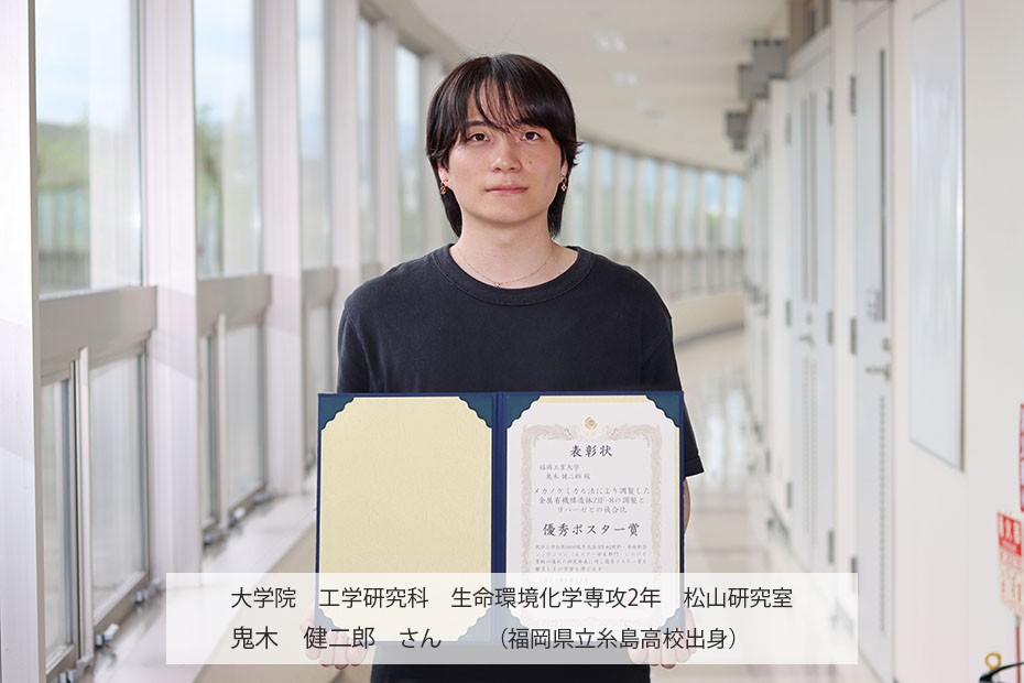 新着情報[大学院 生命環境化学専攻]松山研究室 化学工学会第56回秋季大会 材料・界面部会シンポジウム(ポスター発表部門) 優秀ポスター賞 受賞