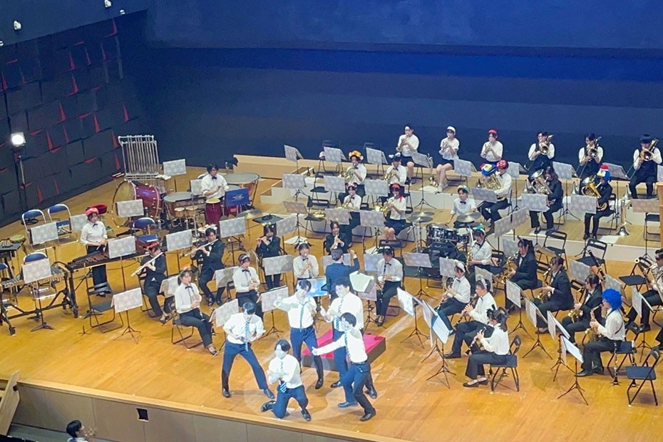 本公演は二部構成で行われ、第一部では、イギリスの作曲家・ピーター・グレイアム作曲「巨人の肩に乗って」や、フィリップ・スパーク作曲「ウィークエンド・イン・ニューヨーク」などを演奏。 第二部では本学ならではの「FITメドレー」として、アイドルやアーティストの曲をダンス演出とともに披露し、観客の皆様と一体となって盛り上がるステージを創り上げました。