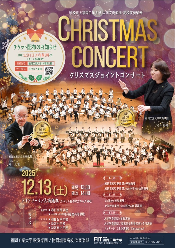 12月13日(土)に本学の活動にご賛同・ご協力いただいている地域の方々、地域の中学・高校の吹奏楽部をご招待してクリスマスコンサートを開催いたします。当イベントは、地域の皆様への日ごろの感謝を伝える場として、また地域の中学・高校の吹奏楽部には日ごろの成果を発表する場として2022年より開催しています。