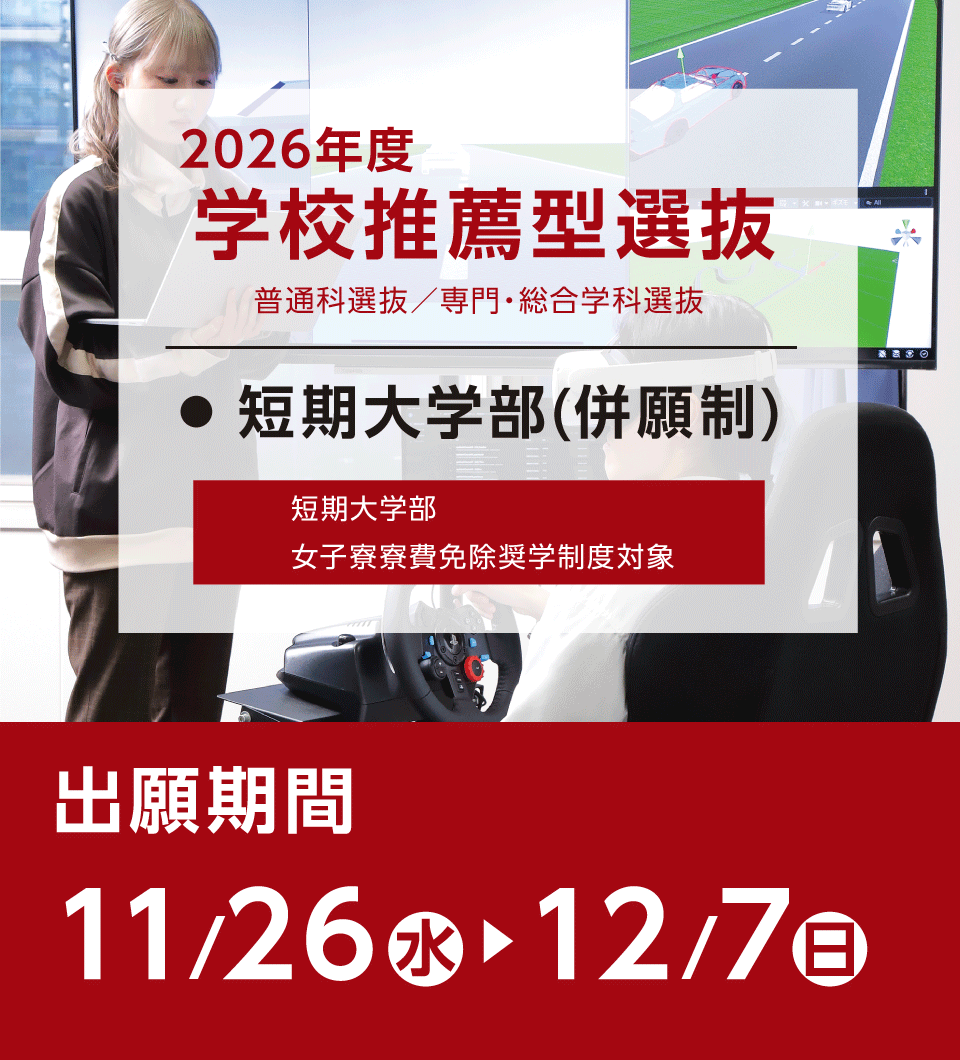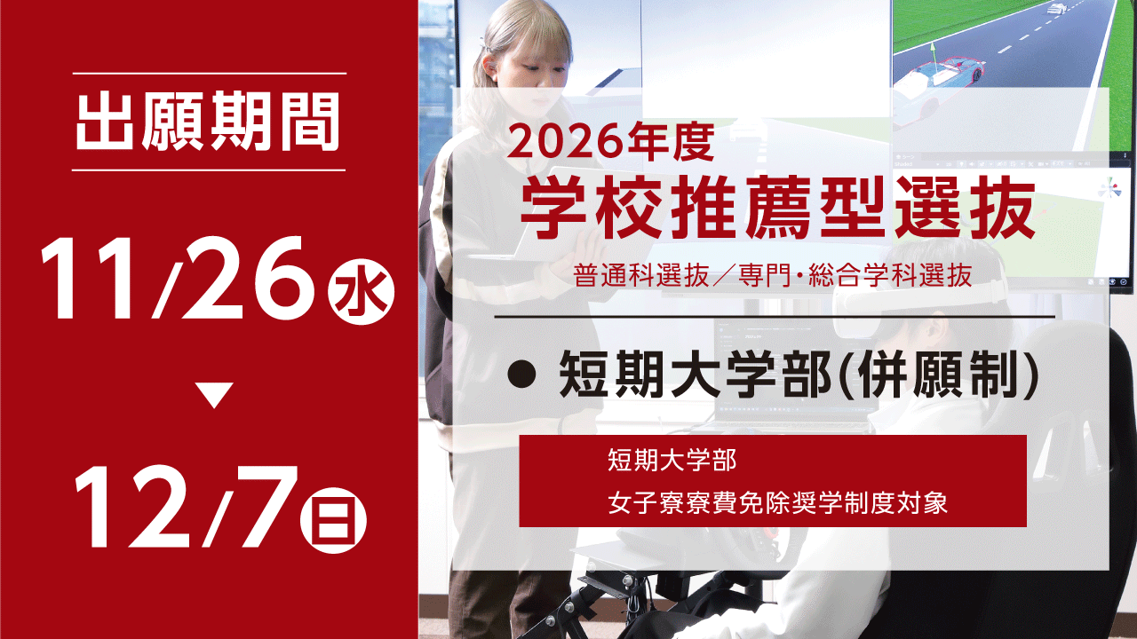 新着情報【短大】11/26(水)~12/7(日)2026年度「学校推薦型選抜」(併願制)出願受付中