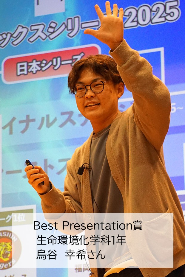 2025年12月3日(水)英語プレゼンテーションのコンテスト「第10回FIT TALKS」を開催しました。今年の参加者8名は全員中級のレベルのテーマを選び、10月から国際連携室の英語ネイティブスタッフと一緒にグループと個人レッスンを重ねてきました。FIT TALKSは英語でのプレゼンテーションを行う上での3つの重要な要素である①アイデアを論理的にまとめる能力、②英語能力、③人前で自信を持って発表する能力のそれぞれの向上を目指しています。学生生活が多忙を極める中、人前で発表することの緊張を乗り越え、参加者全員FIT TALKS の目標を見事に達成しました。