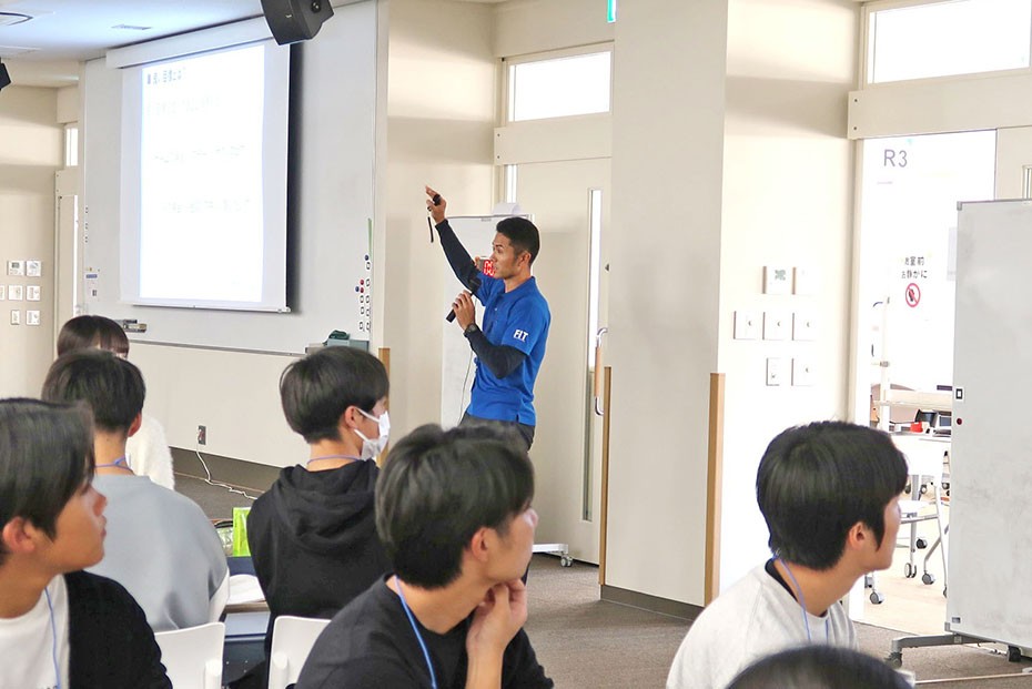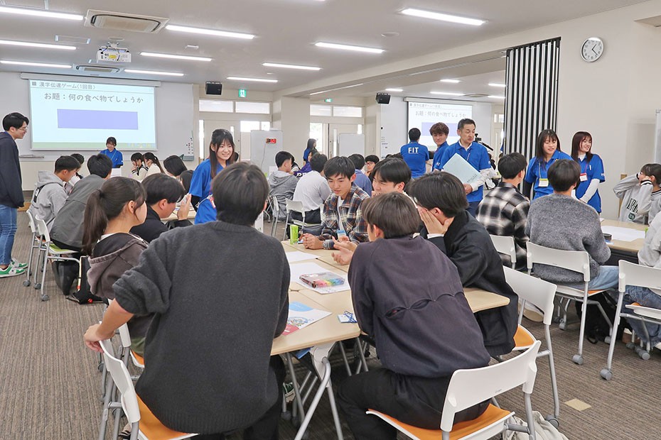 冒頭では、学生FD団体「FIT-join」によるアイスブレイクで緊張をほぐし、交流を促進。続いて、教養力育成センター樋口教授によるワークショップでは、高校生活を振り返り、長期・中期・短期の目標を設定し共有しました。また教養力育成センター長徳永教授の講義では、福岡工業大学の教育方針として主体的学びと実践力育成を説明し、大学生活は「スパイラルアップ」で探究心が鍵であると強調されました。また、入学までの期間は興味を深め、生活習慣を整える準備期間にするようアドバイスがありました。