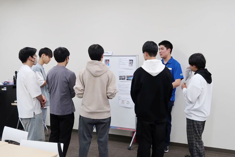 さらに、情報工学科3年の学生が、時間割作成や長期休暇の活用、自己管理の重要性を具体例で紹介。大学生活に向けて今の高校生活も楽しんでほしいとメッセージを送りました。ポスターセッションでは15名の先輩が大学生活を発表し、参加者は将来の目標や高校生活での目標を設定しました。