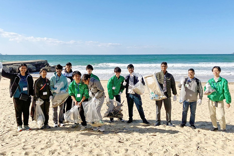 一行は北九州市の公立高校を訪問し、日本の高校生活の規律を学びました。また、北九州市環境ミュージアムを訪れ、公害汚染からの克服を成し遂げた歴史を真剣に学ぶことで、ニューデリーで起きている公害の解決方法のヒントを得ていました。本学では、エコFIT(環境学生組織)の学生メンバーとのビーチクリーニングと、持ち帰ったゴミの再利用ワークショップを通し、環境への学びを深めました。インドの高校生は本学の学生とも日本語と英語を使って活発に交流しました。これにより、本学への進学を真剣に考えるきっかけとなったようでした。短い期間でしたが、日本文化・環境・学術・コミュニケーション力など多岐にわたる学びの多い1週間となりました。