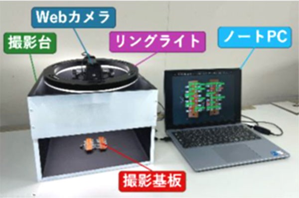 授業では、生徒・学生がはんだ付けした基板を撮影台に置き、Webカメラで撮影する。あらかじめ学習させたAIが画像を解析し、「良品/不良」とその位置をモニター上にリアルタイムで表示する。判定結果をもとに、「なぜ不良と判定されたのか」「どのようなはんだ付けが望ましいのか」などを話し合い、必要に応じてはんだ付けのやり直しを行う。