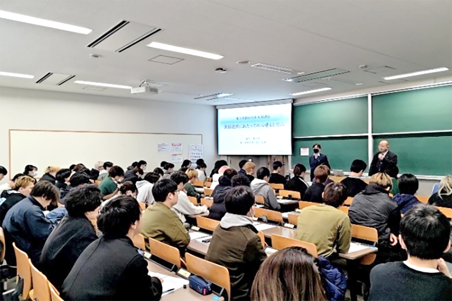 就職活動の時期が年々早まっている昨今においては、早期段階から就職希望先を定め、その目標に向けて自己研鑽を重ねることが重要です。本就職講話が、参加学生の皆さんの今後の就職活動とキャリア形成に大いに役立つことを期待しています。
