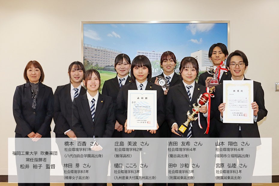 2月8日(日)、沖縄県宜野湾市の沖縄コンベンションセンターにおいて第51回九州アンサンブルコンテスト(九州吹奏楽連盟、朝日新聞社など主催)が開催され、福岡工業大学吹奏楽団が木管8重奏(演奏曲:「レイディアント・ファンタジー」下田和輝作曲)で金賞を受賞し、見事3月に広島市にて開催される第49回全日本アンサンブルコンテストに九州代表として推薦されました。 全日本3連覇めざして、団員一同さらに研鑽を重ねてまいります。