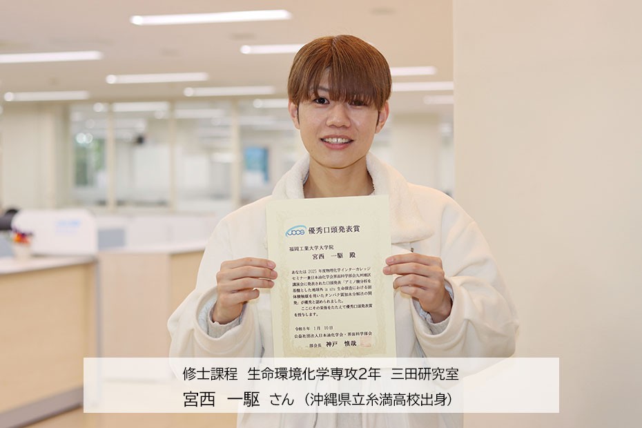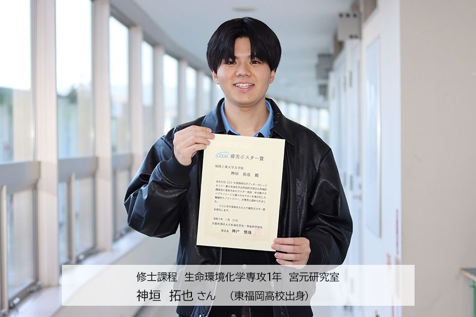 新着情報[大学院 生命環境化学専攻]三田研究室 ・宮元研究室『2025年度 物理化学インターカレッジセミナー兼 日本油化学会 界面科学部会 九州地区講演会』にて優秀口頭発表賞・優秀ポスター賞を受賞