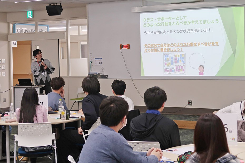 この学生サポーターの育成のため、3月27日(木)に2026年度ファシリテーション研修を行い、CS候補生55名と、教職員3名の計58名が参加しました。