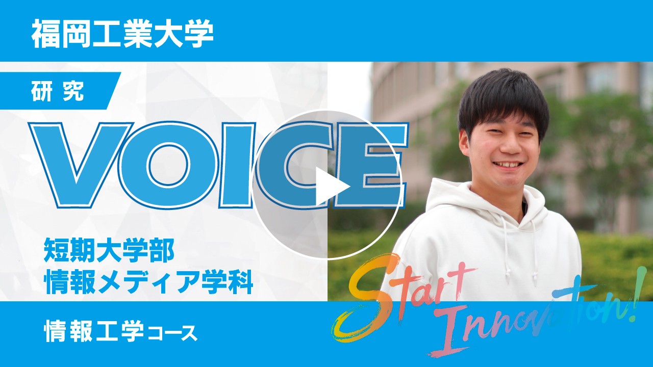 受験生向け情報 動画で見る福岡工業大学 学生紹介動画「 VOICE」 工学部 電子情報工学科 工学部 生命環境化学科 工学部 知能機械工学科 工学部 電気工学科 情報工学部 情報工学科 情報工学部 情報通信工学科 情報工学部 情報システム工学科 社会環境学部 社会環境学科 社会環境学部 社会環境学科 短期大学部 情報工学コース 短期大学部 メディアコミュニケーションコース 大学紹介 2025年度 大学紹介動画 福工大のキャリア支援「全力career」 福工大が誇る『学生の就職満足度』 研究・教育施設 学生生活施設 課外学習施設 男子寮紹介 女子寮紹介 福岡工業大学 youtubeチャンネル 福岡工業大学 instagram 入試情報 入試情報トップへ 大学入試 入試概要 国公立大学との併願対応表 入試結果・合格発表 過去の入試結果 受験生向け情報 資料請求(パンフレット) 奨学金紹介 「日本学生支援機構奨学金」および「高等教育の修学支援新制度」について(入学予定者向けご案内) 「高等教育の修学支援新制度」採用候補者の入学手続金猶予について(2026年度入学生) 進学相談会 受験生サイト オープンキャンパス 動画で見る福岡工業大学 キーワードから探す福工大の学び 資格を学科から探す 数字で見る福岡工業大学 TOP 入試情報 受験生向け情報 動画で見る福岡工業大学